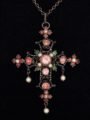 Three freshwater pearls are suspended below the foot and the arms of the cross, the whole effect being visually extremely pleasing.