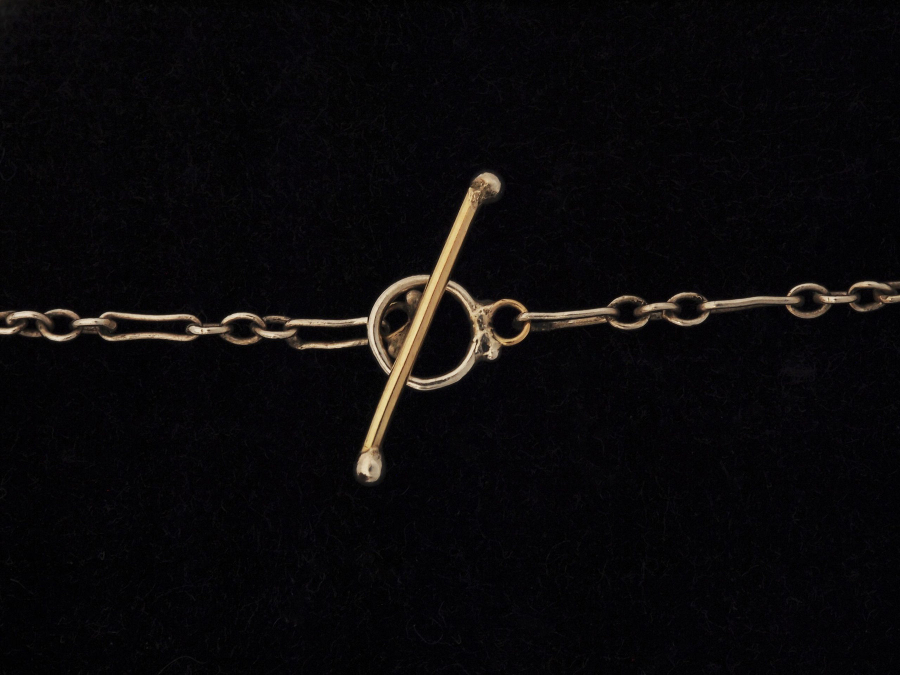 4.75 cm long including the suspender and on the original chain with its toggle fastener and a length of just under 36 cm.