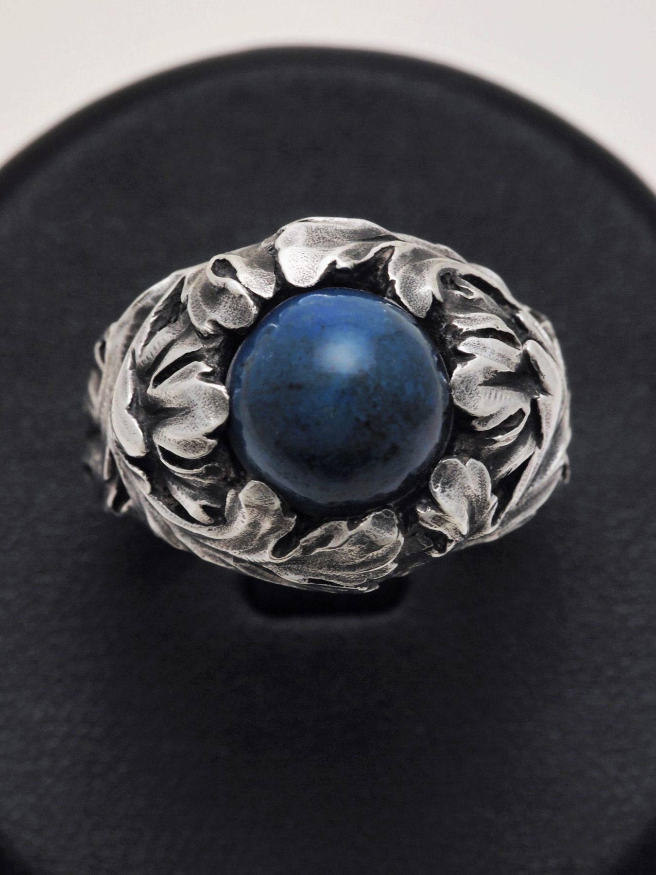 French Arts & Crafts silver ring set with a very fine pointed sodalite in its centre.