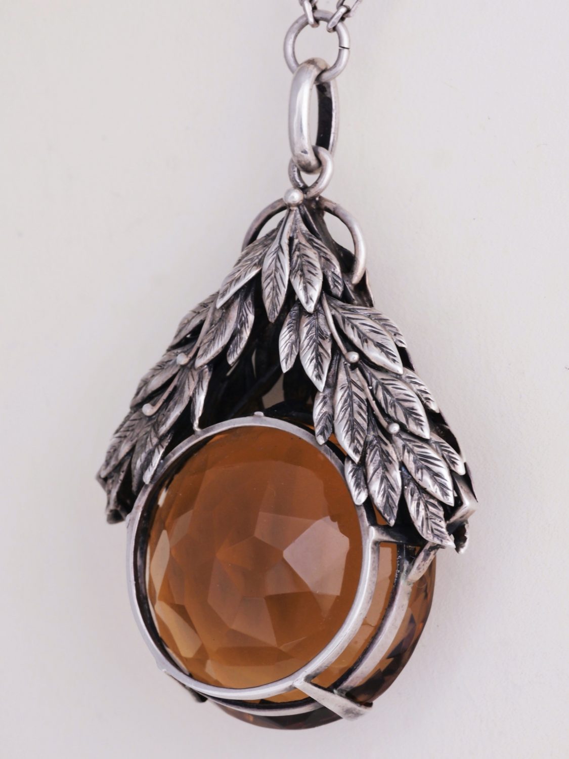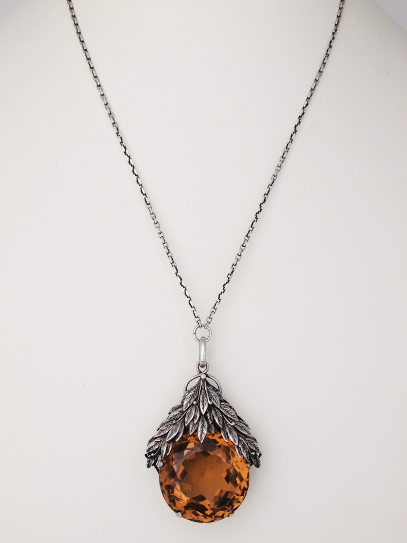 This leafy design is also on the back of the pendant, attaching to the ring-shaped mount which houses the citrine.