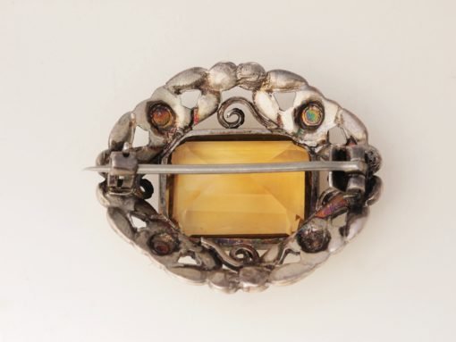 Crafted in silver and detailed with yellow enamel, with gold highlights forming the centres of little flowers, each item is also set with a faceted citrine, the necklace in fact with two.