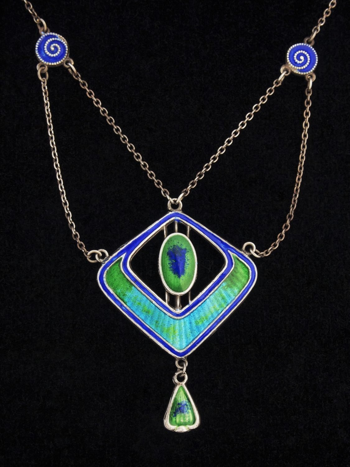 Silver and enamel pendant necklace by Charles Horner in a design that we’ve not come across before.