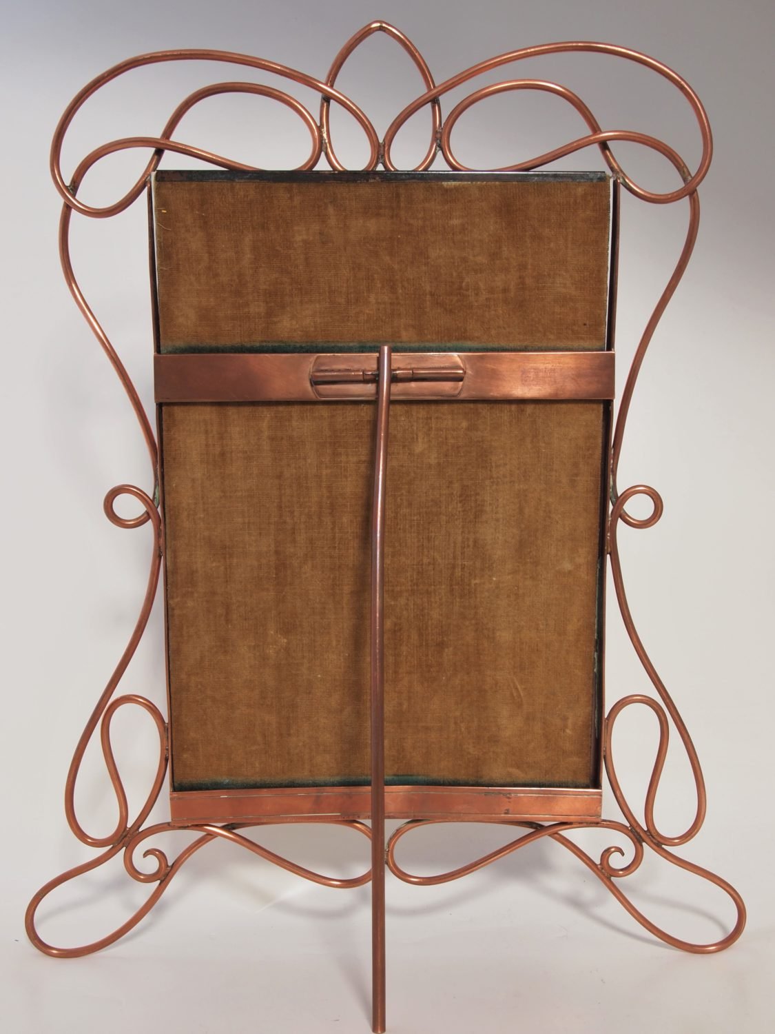 A good sized Art & Crafts standing photograph frame crafted from copper featuring a swirling Art Nouveau design in a heavy gauge copper wirework.