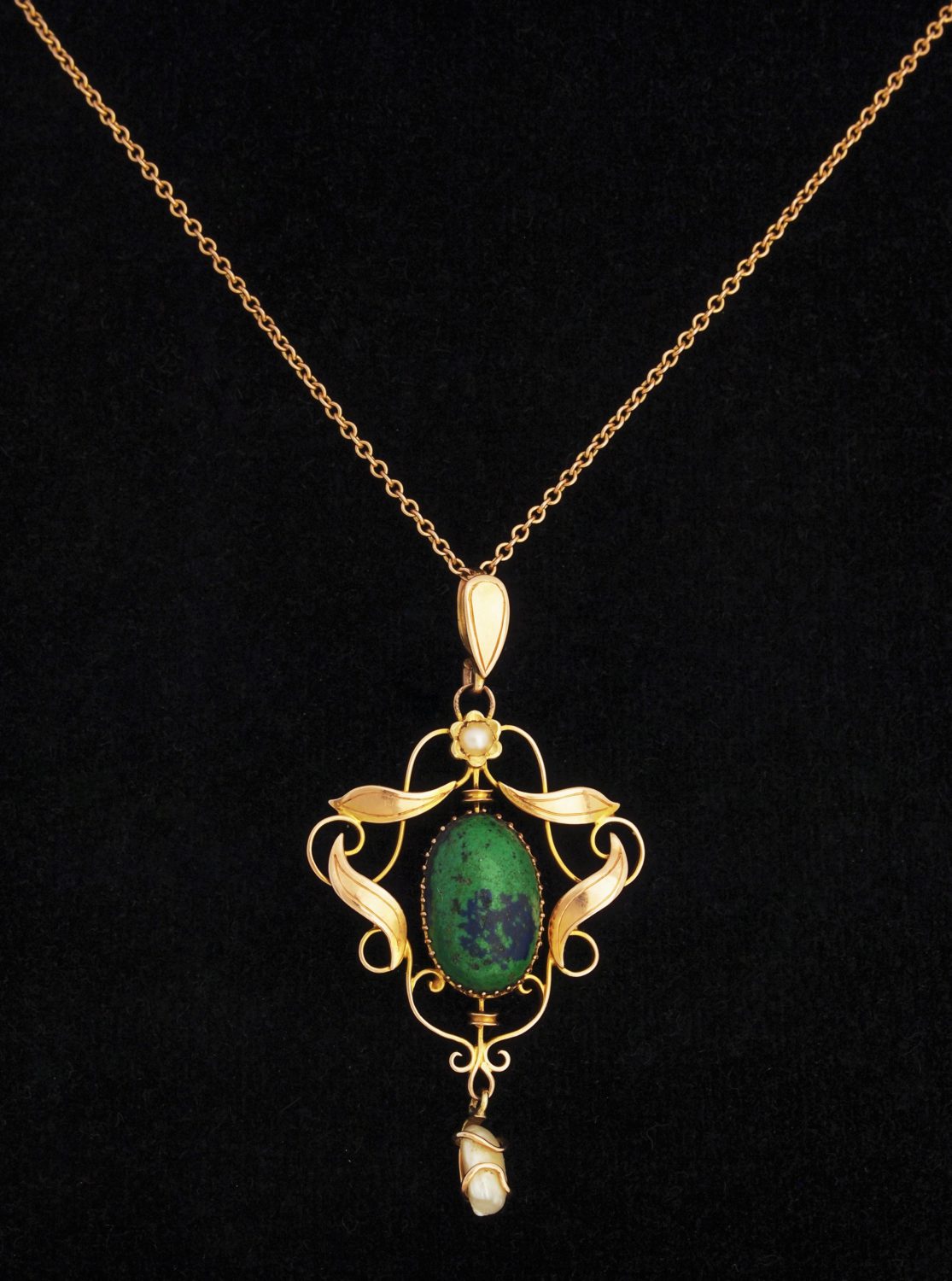 Art Nouveau 15 ct. Gold and Azurite Pendant
