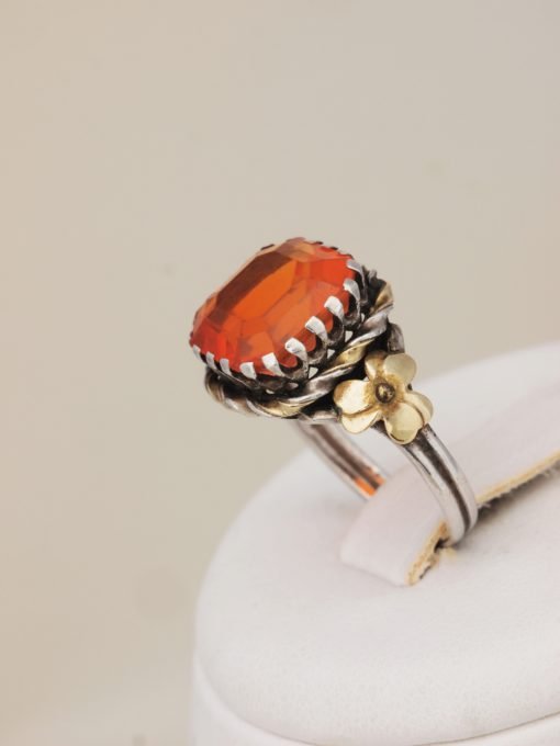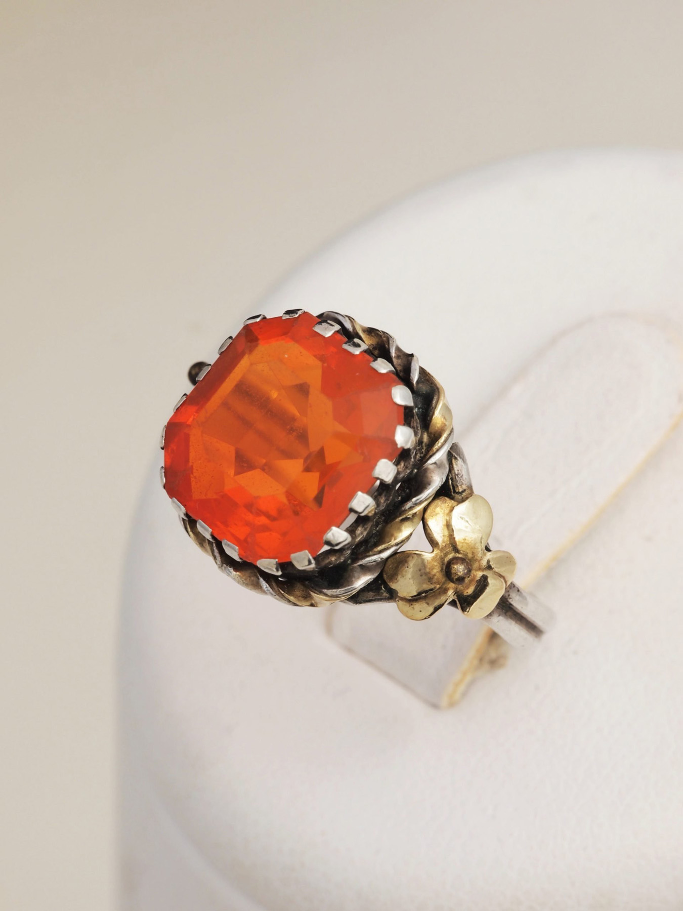 Arts & Crafts Silver, Gold and Fire Opal Ring*