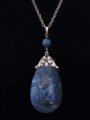 English Arts & Crafts pendant crafted in silver, featuring a large teardrop shaped Swiss lapis stone.