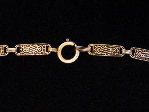 Bracelet from Murrle Bennett crafted in 9 ct. gold, so very typical of the style of jewellery supplied by them to Liberty’s during the early 1900’s. Openwork in design with alternate rectangular and square sections,…