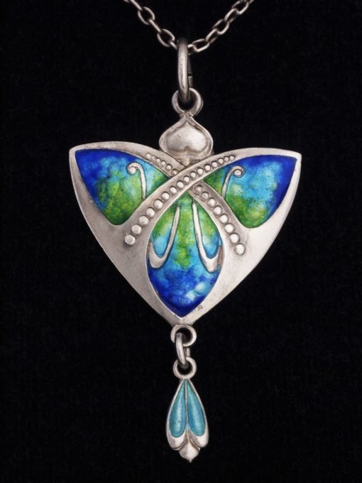 Silver and enamel Art Nouveau pendant by James Fenton with a Birmingham hallmark for the year 1908.