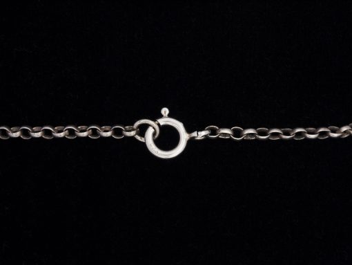 At the foot hangs a silver mounted pearl and the pendant connects to the necklace chain via a dedicated bale which adds a further design feature.