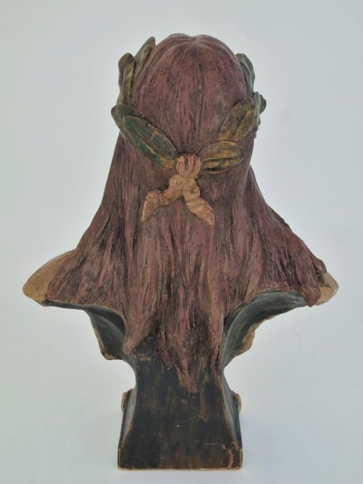 German Art Nouveau ceramic bust of a young maiden with laurel leaves in her hair.