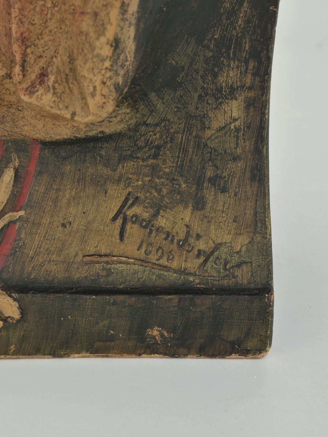 The bust is signed by the artist (Fritz) Köchendorfer to one side and dated 1896, this being the year he joined the company Schumacher & Co. whose name appears on a circular disc inserted in the underside.