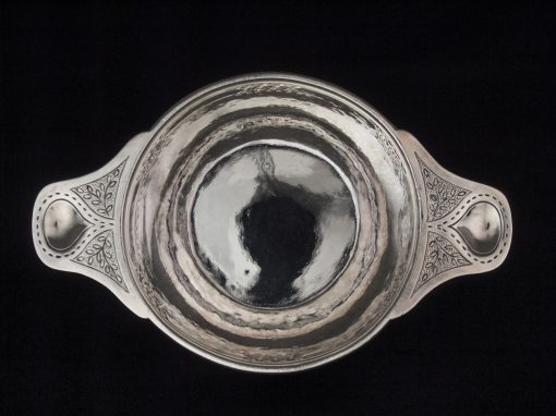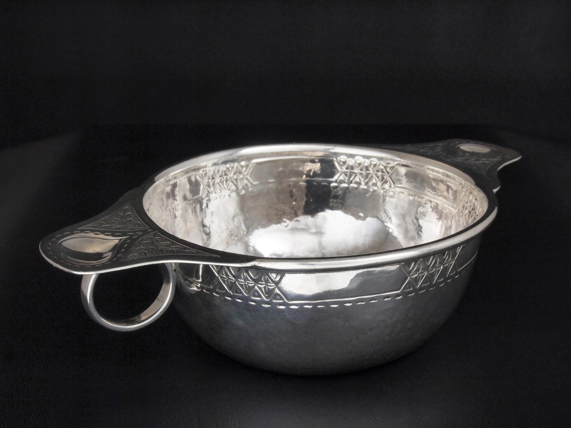 Silver quaich or two handled bowl showing the Liberty & Co maker’s mark and a Birmingham hallmark for the year 1936.