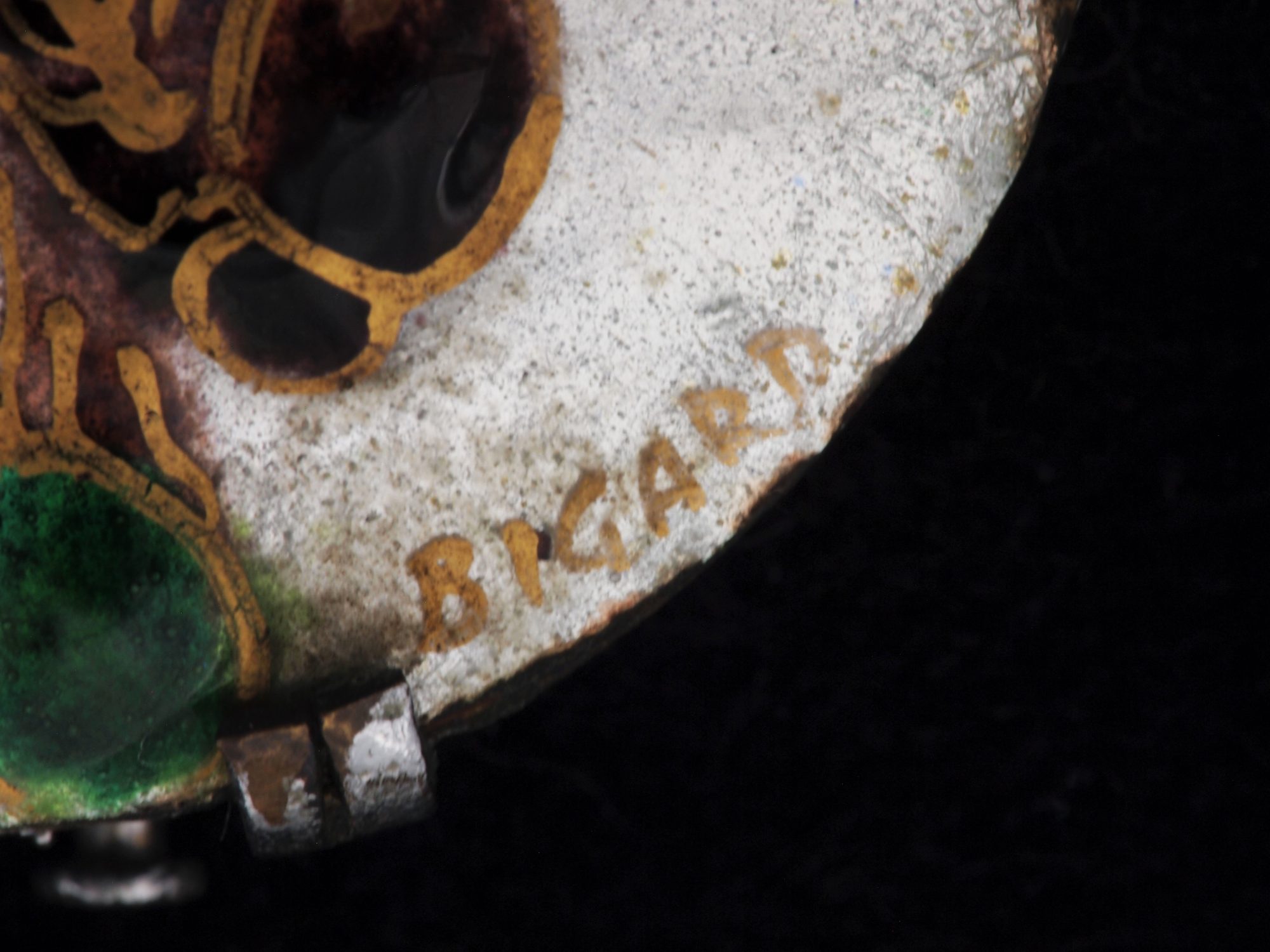 Circular and simply mounted without a surrounding frame, this is a unique piece signed near the edge by the artist Bigard.
