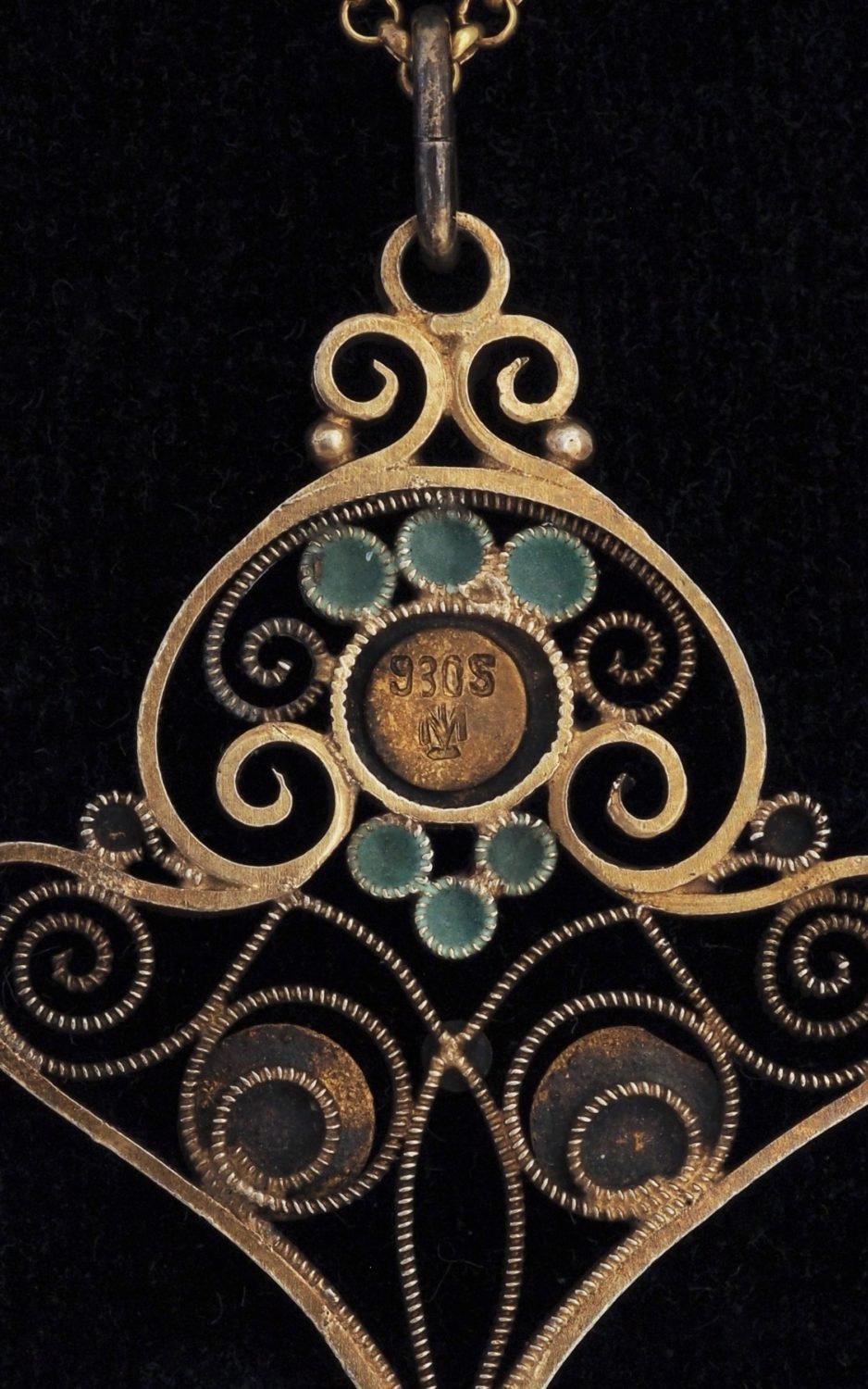 Marked with the MH maker’s mark and on a silver gilt chain with a length of 46 cms.