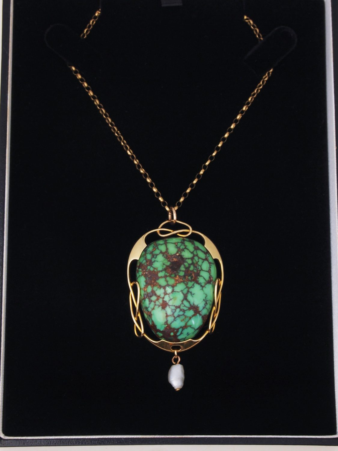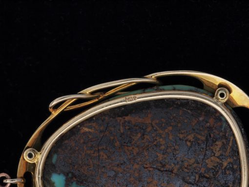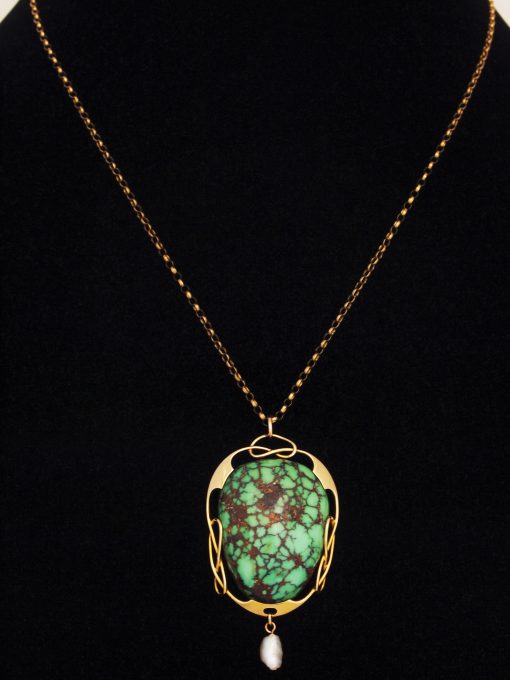 Pendant in 15 ct. gold made by Murrle bennett & Co. circa 1905, set with a large turquoise matrix cabochon.