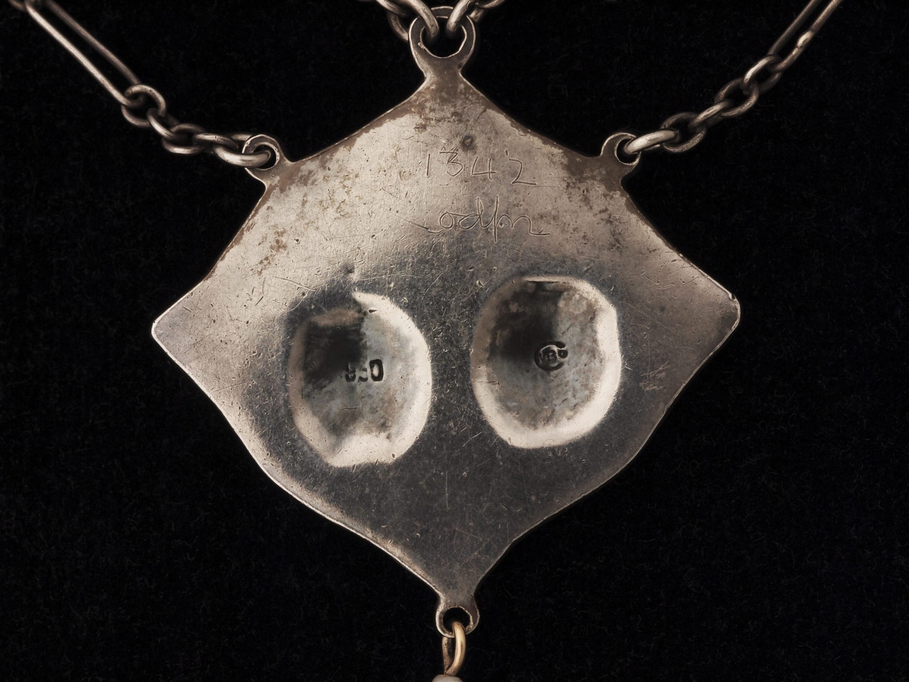 The chainwork is all original throughout, the pendant hanging on two pairs of chains from matching enamelled side attachments which connect to the remainder of the necklace chain.