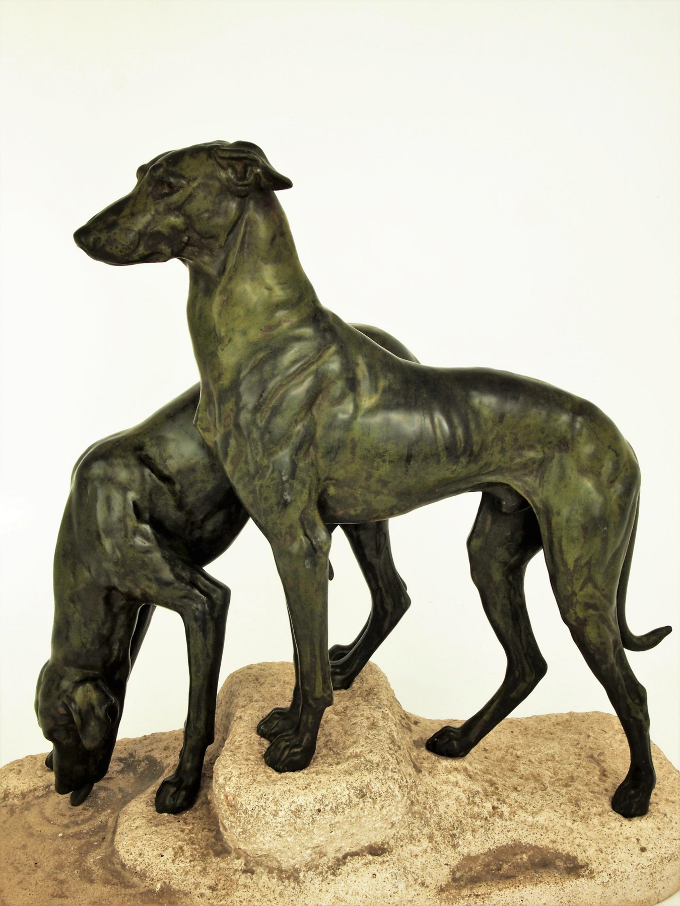 Fabulous Art Deco pair of hounds by the French animalier Jules-Edmond Masson (born 1871).
