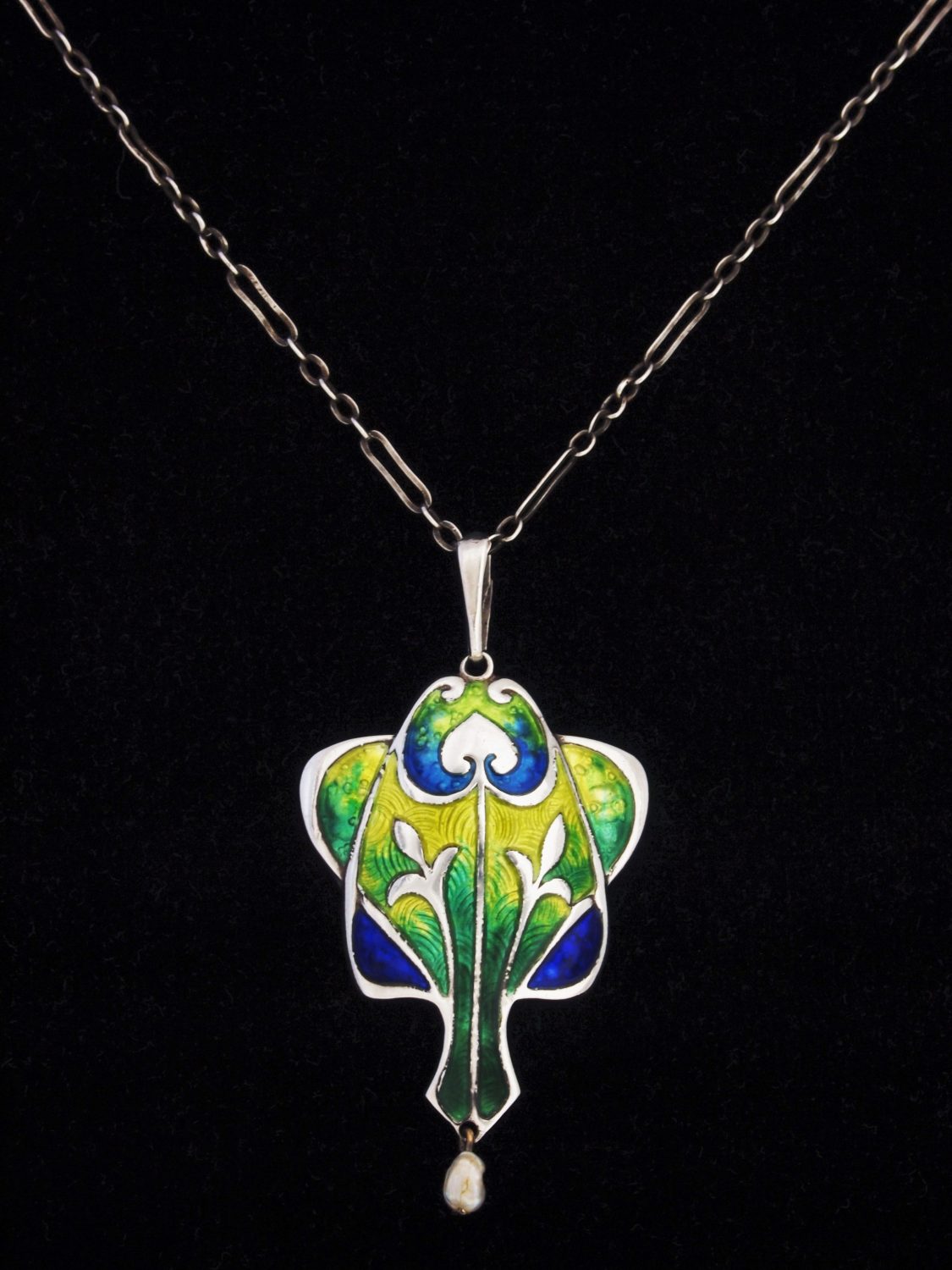 Art Nouveau silver and enamel pendant hallmarked for the year 1909 showing the maker’s mark of Smith & Ewen whose workshops were in Frederick Street, Birmingham.