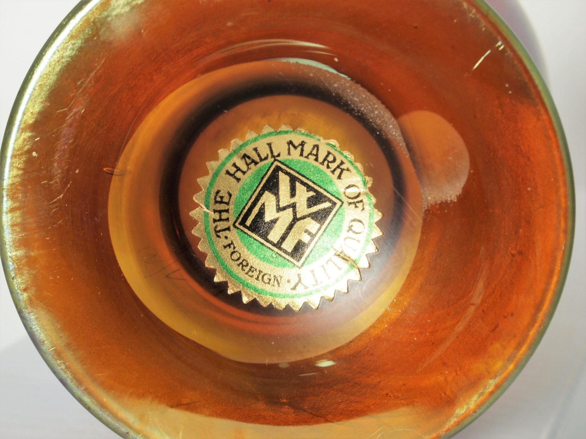 There is an old, original WMF paper label still affixed to the base on the pontil mark. Height is 14.5 cm.