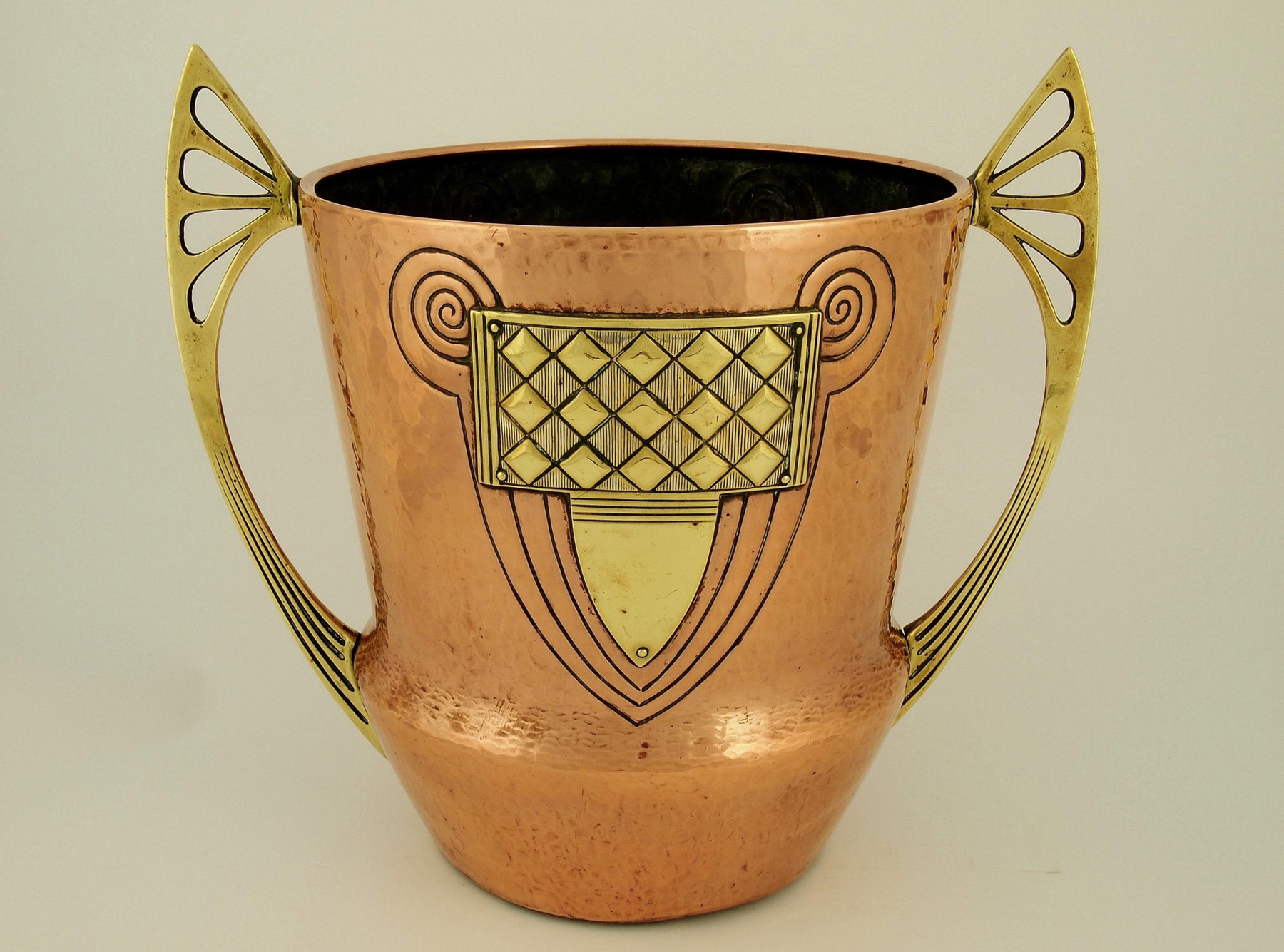 The shield pattern and ornate handles lend this piece a classic look which would set off a large indoor plant perfectly.